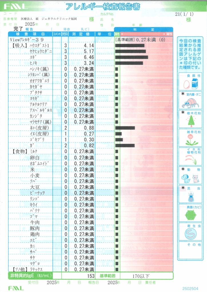 ジェネラルクリニック福岡では、アレルギー症状の原因を把握するため、
